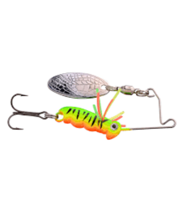 Les insectes et les alevins restent des mets de choix pour de nombreux carnassiers, notamment lors de la saison estivale. Avec le Larva Mayfly Spinner, SPRO a développé ce micro spinner qui est le parfait mélange entre le profil d'un insecte et l'éclat d'un poisson blanc. Le leurre comporte aussi des détails très réalistes comme sur la palette où l'on retrouve les nervures d'une aile d'insecte, le corps en forme de larve est composé de petits yeux holographiques et de pattes en silicone combinées à des plumes holographiques. La palette va tourner très rapidement ce qui va créer énormément de vibrations et de reflets sous l'eau qui va attirer les carnassiers sur de grande distance.