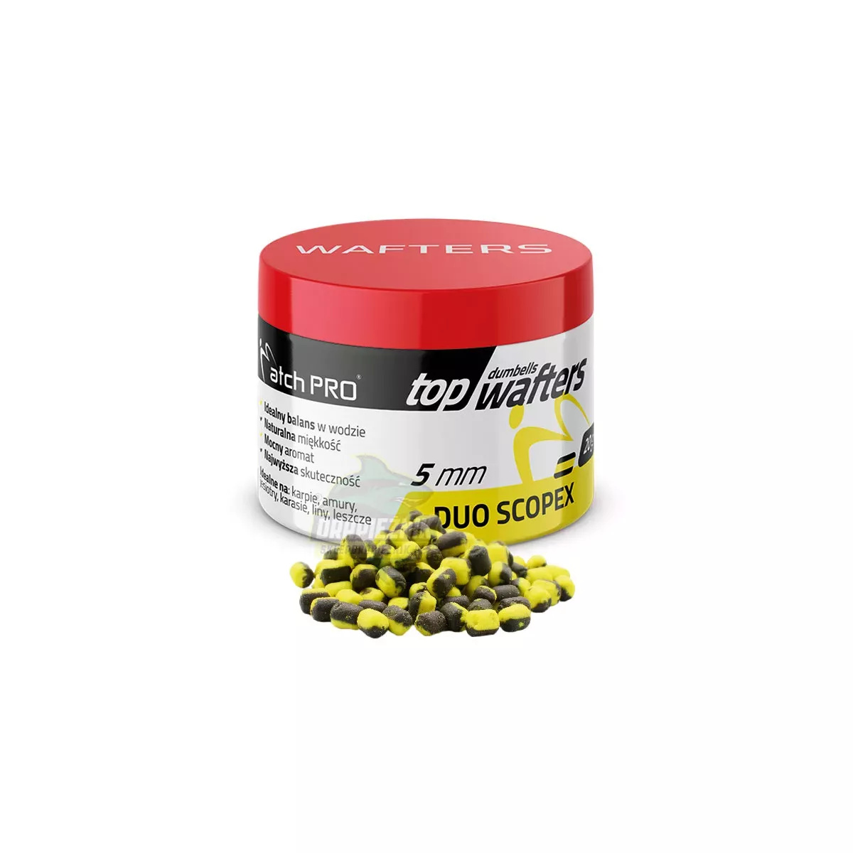 Les MatchPro Top Dumbell Duo Wafters 5mm sont des appâts équilibrés de qualité compétition, avec une saveur de maïs forte et naturelle. Grâce à leur petite taille, leurs couleurs intenses et leur arôme attractif, ces appâts sont parfaits pour attraper efficacement des poissons dans toutes les conditions et à tout moment de l'année.