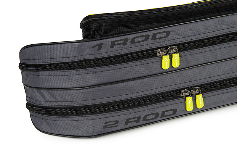 Ce fourreau dispose de deux compartiments zippés séparés, permettant un rangement sécurisé et organisé. Une poche extérieure est également prévue pour ranger des épuisettes ou bras feeder, offrant plus de flexibilité pour votre matériel.