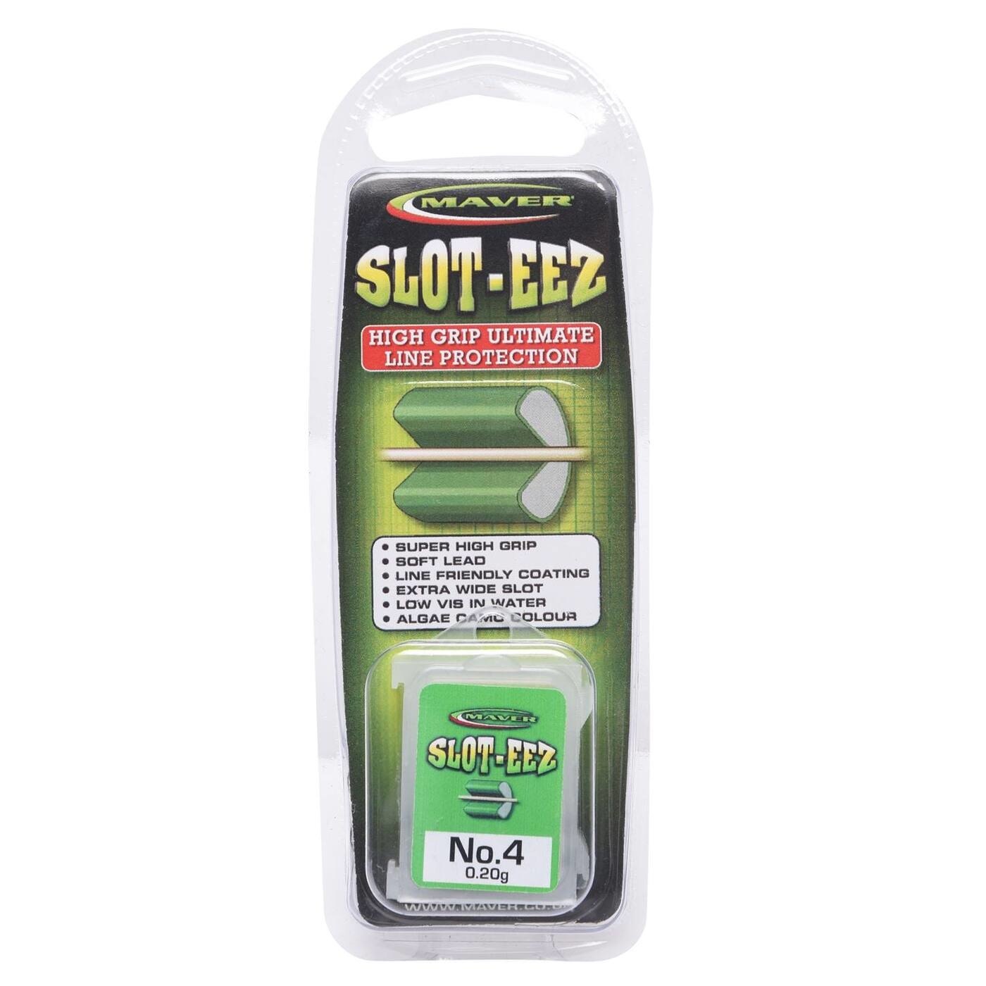 Les Maver slot-eez sont totalement uniques. Avec une fente extra large qui permet d'accueillir facilement des lignes de plus grand diamètre, Maver slot-eez améliorera considérablement la présentation de votre montage. Son revêtement spécial "grippa" est doux pour la ligne et minimise l'abrasion de la ligne. Finition en couleur algues mates. Fabriqué en plomb souple.