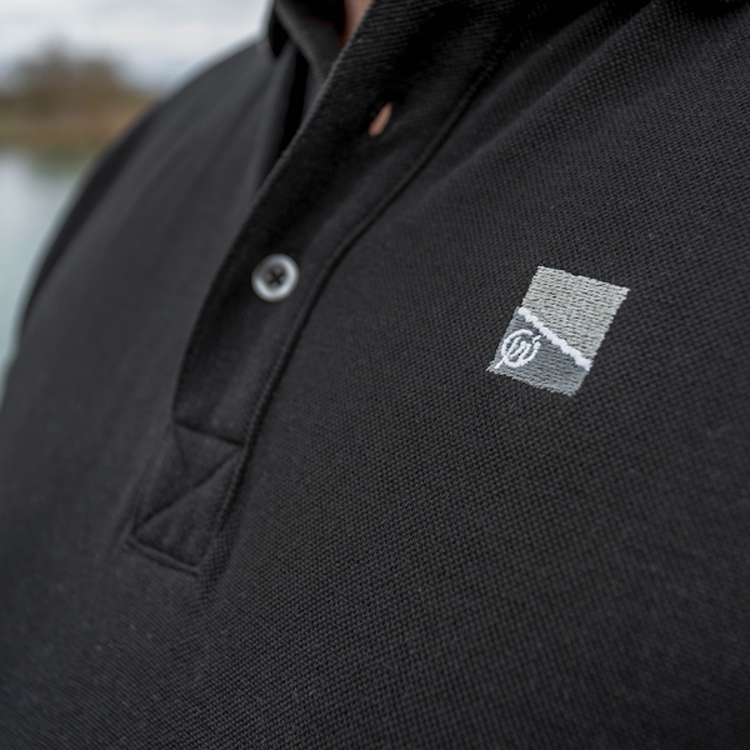 Polo noir en 60% coton et 40% polyester, avec un petit logo de marque brodé élégant