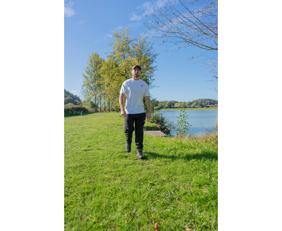 Le jogger est fabrique dans un melange de 80 pour cent coton et 20 pour cent polyester. Le coton apporte une sensation douce et naturelle sur la peau, tandis que le polyester renforce la tenue du tissu et la resistance a l usure. Le pantalon convient ainsi tres bien a un usage intensif, par exemple lorsque vous marchez beaucoup le long de la berge, vous mettez a genoux ou restez longtemps assis sur votre station.