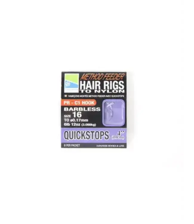 Le Preston Method Feeder Hair Rig to Nylon Barbless Quickstop 10cm (8 pièces) est spécialement conçu pour les pêcheurs exigeants pratiquant la pêche au method feeder. Ces bas de ligne sont équipés d’un hameçon PR-C1 sans ardillon en forme de cercle et d’un Quickstop permettant une fixation rapide et facile des appâts. Grâce à la conception unique de l’hameçon circulaire, vous réduisez le risque de décrocher les poissons, tout en adoptant une approche respectueuse des poissons avec l’absence d’ardillon.