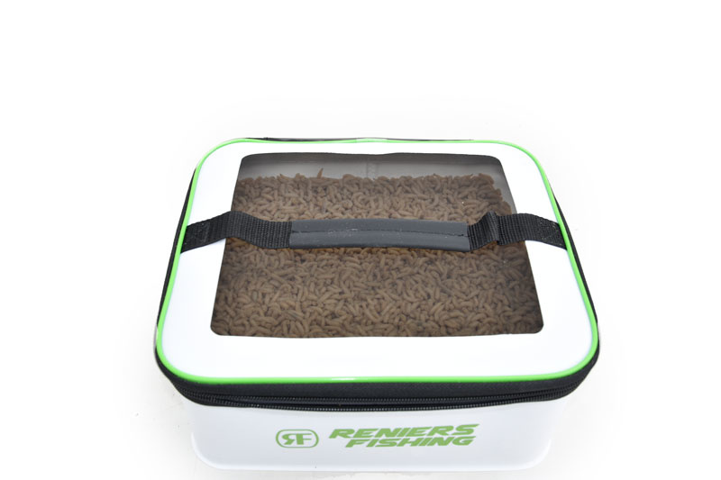 Le boîte EVA à asticots et accessoires de Reniers Fishing possède une maille très fine dans son couvercle, ce qui le rend parfait pour stocker vos appâts vivants (asticots, vers, pinkies,...). Comme le couvercle est équipé d'un filet, d'une poignée et que le matériau EVA est de couleur blanche, vos appâts vivants sont toujours en parfait état de fraîcheur et peuvent être stockés en toute sécurité. Vous pouvez y stocker jusqu'à 5 litres d'asticots. Dans ce sac, vous pouvez également ranger des accessoires tels que du fil, des décrocheurs, des mangeurs de méthode, etc. Vous pouvez les mettre mouillés dans le sac et le filet fourni leur permet de bien sécher.