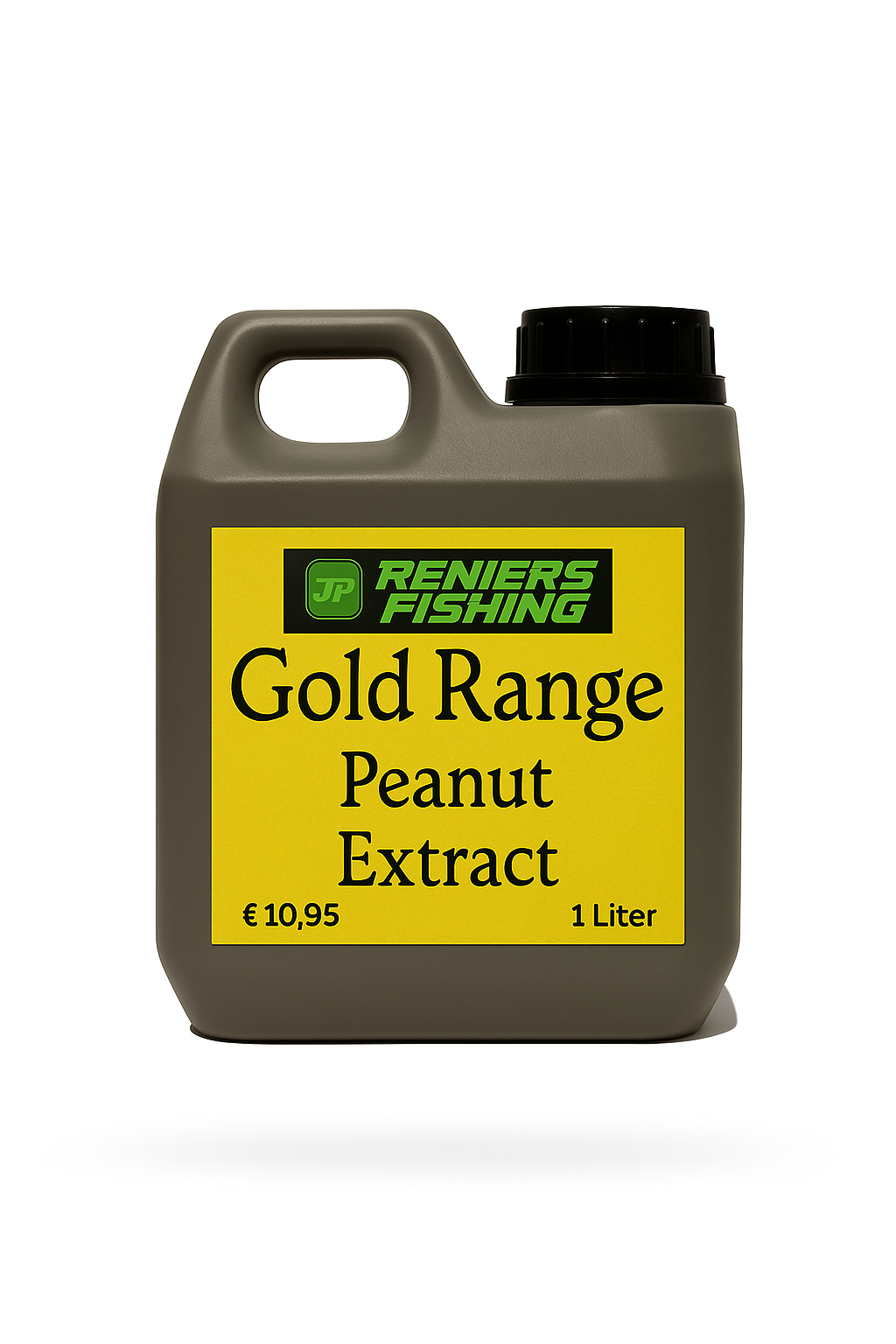 Reniers Fishing Gold Range Peanut Extract est un liquide épais extrait de la cuisson et du traitement de cacahuètes. Il offre un goût crémeux et une forte odeur de cacahuète, idéal pour attirer la carpe.