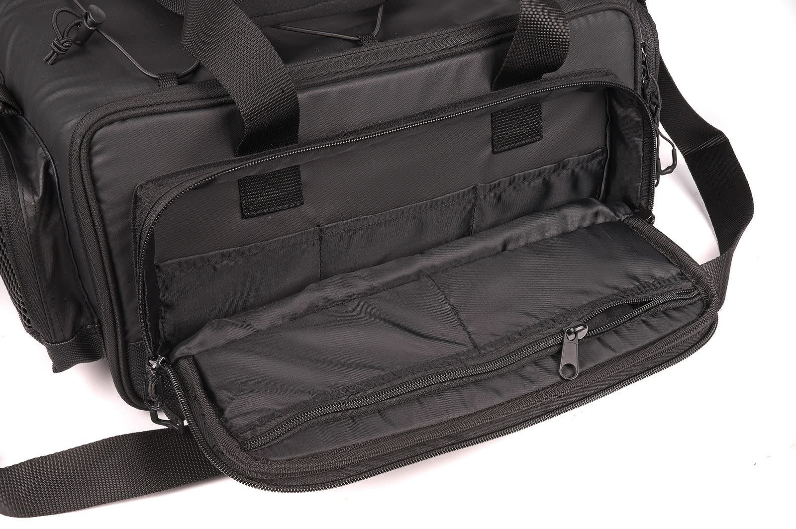 - 100% Polyester- 4 boîtes à pêche en PP 35,5x22x4,5cm- Anneau en D pour fixer le tapis de décrochage- 3 grands compartiments avec fermeture éclair- 5 poches à l'intérieur- Bandoulière rembourrée- Bandoulière réglable- Porte-vêtements élastique