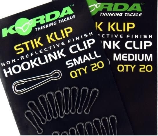 Le clip Stick de Korda est la connexion entre la ligne de fond et l'émerillon. Les clips Stik rendent le changement rapide des lignes de fond possible. Il est recommandé d'utiliser le clip stik avec un morceau de manchon en silicone.