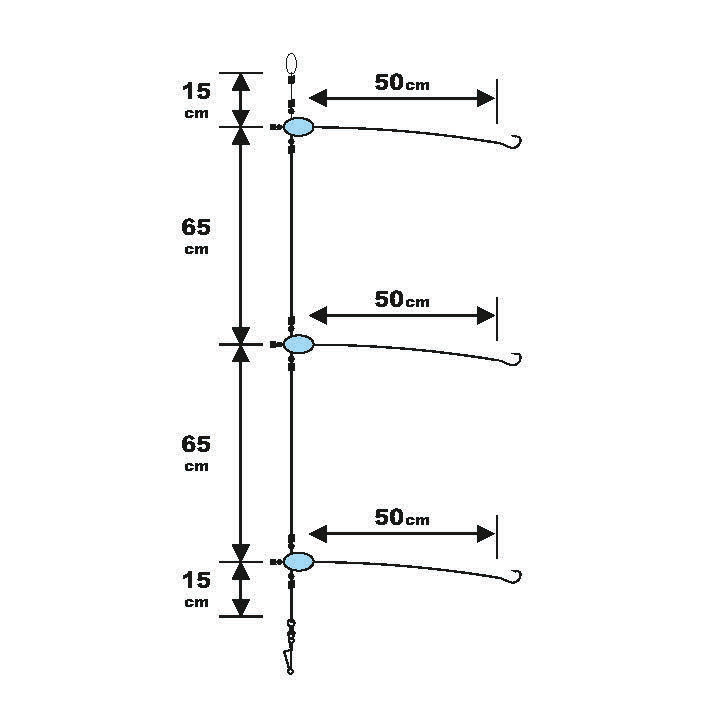 Les montages BATEAU RS COMPETITION SPECIAL DAURADE / FLUORO sont munis d’une boucle sur le haut du corps de ligne permettant de les accrocher rapidement sur une agrafe. Un émerillon avec agrafe italienne placé sur le bas du corps de ligne permet de changer rapidement le grammage des plombs en fonction des conditions de pêche.Munis de 3 empiles de 50cm en fluorocarbone montés sur des perles rotatives transparentes et d’hameçons forgés renversés à palette ultra résistants en Black Nickel pour éviter la corrosion, les montages BATEAU RS COMPETITION SPECIAL DAURADE / FLUORO vous permettront de pêcher en bateau la daurade et autres sparidés avec des appâts de type languette de calamar, coques, chipirons et fleurettes de sardine.