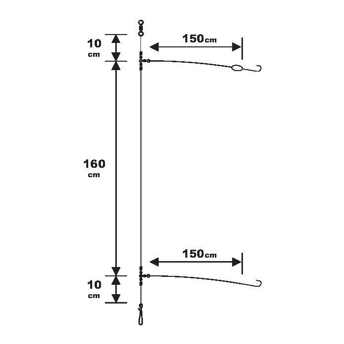 D’une longueur totale de 180cm, les bas de ligne SUNSET SURFCASTING RS COMPETITION SPECIAL BAR / FLUORO 2X150 sont disponibles en hameçon numéro 1/0.