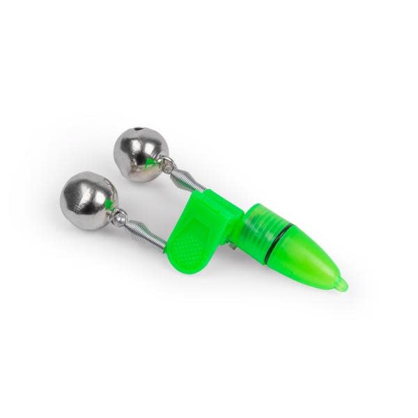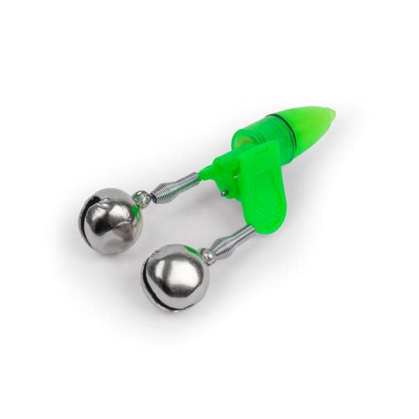 Détecteur de touche Zebco avec clochette et lumière à pile. Avertissement sonore et visuel. S’adapte facilement sur toutes les cannes. Ø 16 mm.
