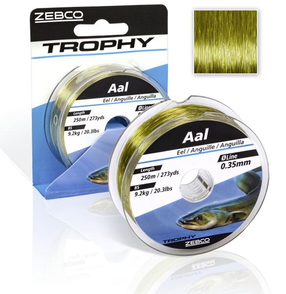 • La Zebco Trophy Anguille 300m est la deuxième génération des lignes Trophy, désormais équipée d'une technologie de production améliorée et d'un emballage attrayant. Cette ligne monofilament élève toutes les caractéristiques essentielles des lignes de pêche à un niveau supérieur, spécialement développée pour répondre aux exigences de la pêche à l'anguille.