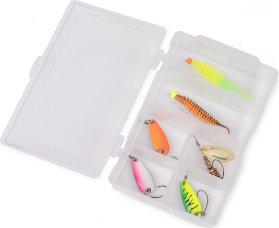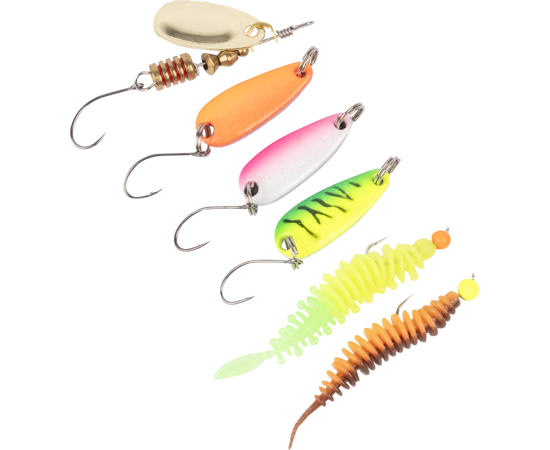 • Le Zebco Target Spin Trout Kit Barbless est conçu pour les pêcheurs modernes de truite qui pratiquent la pêche aux leurres en étangs ou en rivières. Ce kit complet comprend trois cuillers truite de 2.2g en coloris firetiger, rose/blanc et redfire, couvrant toutes les situations de pêche. Il inclut également un ver truite rouge/blanc monté sur une tête plombée tungstène de 0.45g taille 8 et un Worm Pinball chartreuse avec une tête plombée tungstène de 0.73g taille 8, parfaits pour présenter l’appât de façon naturelle et attractive. Pour compléter, un spinner truite de 3g est inclus, déclenchant instantanément les attaques par sa rotation. Tous les éléments sont barbless, ce qui rend le kit idéal pour les plans d’eau où la pêche sans ardillon est obligatoire. Prêt à l’emploi, polyvalent et efficace, il convient aussi bien aux débutants qu’aux pêcheurs confirmés.
