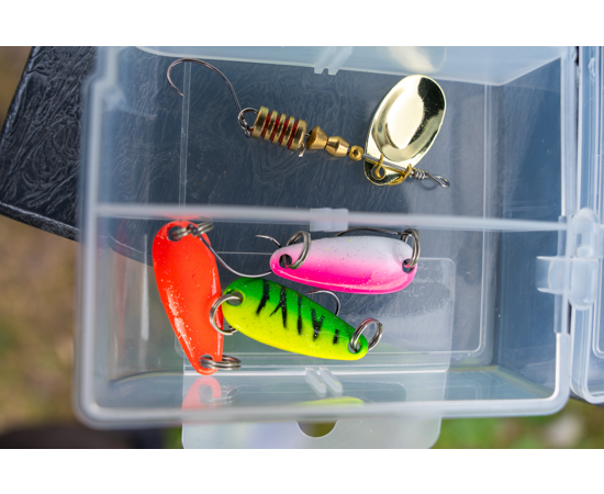 • 3 cuillers truite 2.2g : firetiger, rose/blanc et redfire