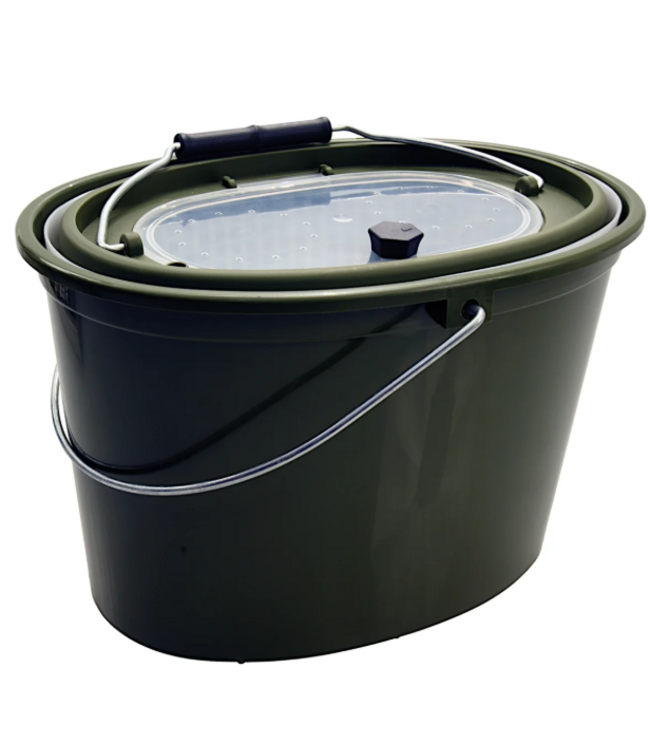 Deze aasketel wordt geleverd met een inzetemmer met gaatjes, waardoor je snel en eenvoudig water kunt verversen of aas kunt spoelen. Dat helpt om je aas langer levend en actief te houden tijdens de sessie. Het deksel is voorzien van ventilatiegaten en een aansluiting voor een luchtpomp, zodat je de zuurstofvoorziening indien nodig nog verder kunt verbeteren.