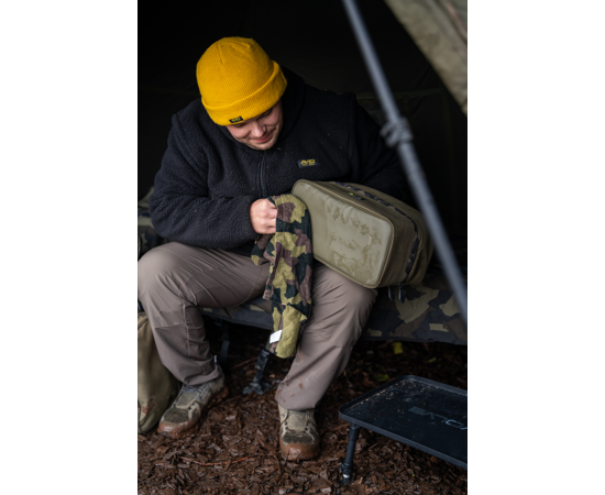 De tas is vervaardigd uit duurzaam en waterafstotend 600D Oxford polyester en voorzien van zware 10 mm ritsen met kenmerkende Avid camo-details. Zowel de buitenkant als de voering zijn van polyester, terwijl de vulling bestaat uit een mix van polyurethaan en polyethyleen voor extra stevigheid.