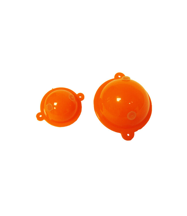 De Buldo rond oranje is een handige dobber die je kunt vullen met bijvoorbeeld water om het juiste werpgewicht te krijgen.