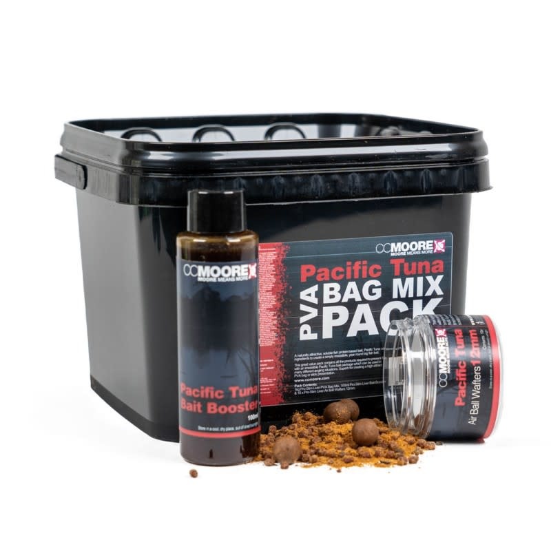 • De CC Moore PVA Bag Mix Pack is een compleet aasconcept in een handige zwarte emmer. Deze set combineert een krachtige PVA Bag Mix, een vloeibare Bait Booster en Air Ball Wafters. Samen vormen zij een onweerstaanbare combinatie van los voer en multi-attractor hookbaits die karpers onder alle omstandigheden verleiden.