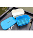 Het blauwe, volledig afsluitbare deksel sluit stevig af en minimaliseert het risico op lekkage tijdens transport. Ideaal voor het meenemen van vochtig aas.