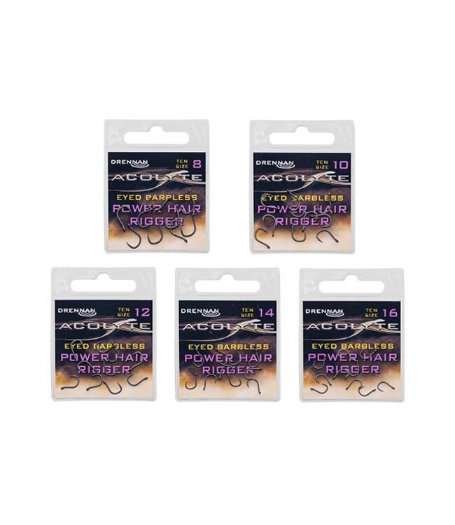De Drennan Acolyte Power Hair Riggers zijn speciaal ontworpen voor de veeleisende visser die op zoek is naar kracht en precisie in zijn haak. Deze haken hebben een uitwaarts gebogen oog, een korte steel en een brede haakbocht, wat zorgt voor een sterke en compacte vorm. Dit maakt ze ideaal voor het vissen met hair rigs, waarbij pellets, mais, kleine boilies of wafters worden gebruikt.