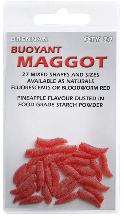 De drie verschillende maten Buoyant Maggot kunnen worden gebruikt op een breed scala aan haken om effectief zinkend, kritisch gebalanceerd of omhoog geknald aas te produceren. Ze zijn ook zeer effectief in combinatie met een levende made of als combinatieaas met echte of kunstmaïs.