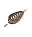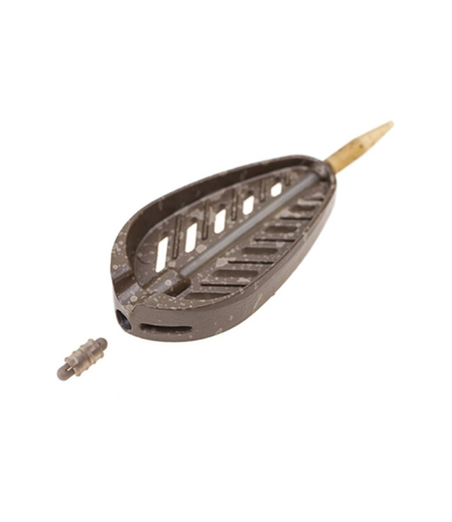 De Method Bombs zijn verkrijgbaar in vier maten, 25g, 30g, 35g, en de grootste van 45g. Deze feeders zijn gemakkelijk te gebruiken en kunnen worden gevuld met een enkele of dubbele laag aas zonder het gebruik van een mal. De sterk geventileerde basis houdt groundbait en pellet uitstekend vast en helpt de afbraak van groundbait of pellets op de feeder zodra deze de bodem bereikt. Elke feeder wordt ook geleverd met een Method Connector die zorgt voor een gemakkelijke lus tot lus bevestiging die zeer snel en gemakkelijk te gebruiken is, zelfs met koude, natte vingers en past netjes in een uitsparing in de neus van de feeder. Het gewicht naar voren, gestroomlijnde ontwerp zorgt voor nauwkeurige worpen op lange afstand. De giek is kort gehouden met een taps toelopend, gestroomlijnd rubber dat klitten helpt voorkomen. Dit voorkomt een lange giek die soms wat opzichtig kan zijn op de commerciële visserij. Ook zijn ze voorzien van een handige depressie aan de onderkant van de feeder waardoor je je haaklengte terug kunt vouwen in het voer zonder bang te hoeven zijn dat de lijn aan de rand van de feeder beschadigd raakt.