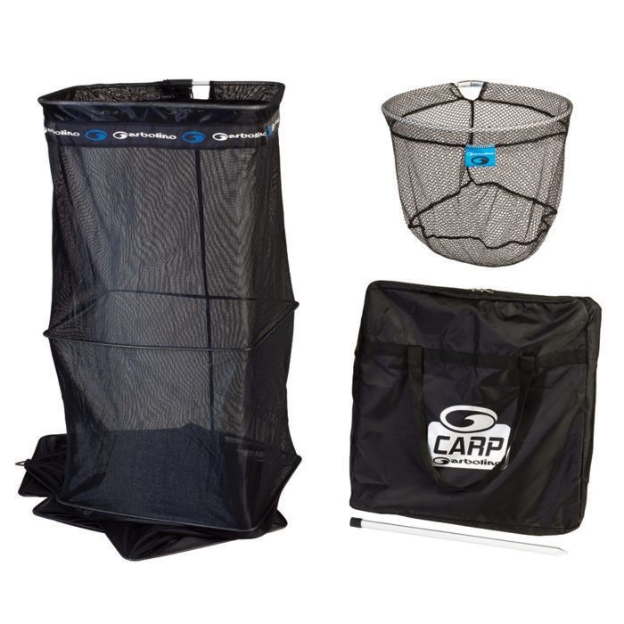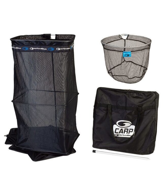 De Garbolino Carp set bestaat uit een 2,5 m lang rechthoekig karperleefnet, de bijbehorende bankstick, een karperschepnet en een leefnetzak. Deze set omvat alle nuttige en noodzakelijke accessoires voor vissers die zich bekommeren om het comfort van hun vangst en die onder de beste omstandigheden willen gaan karpervissen en overgaan tot de uitzetting. De CARP GARBOLINO leefnet is lang en breed genoeg om meerdere grote vissen in alle veiligheid voor zowel de karper als de uitrusting op te bergen.