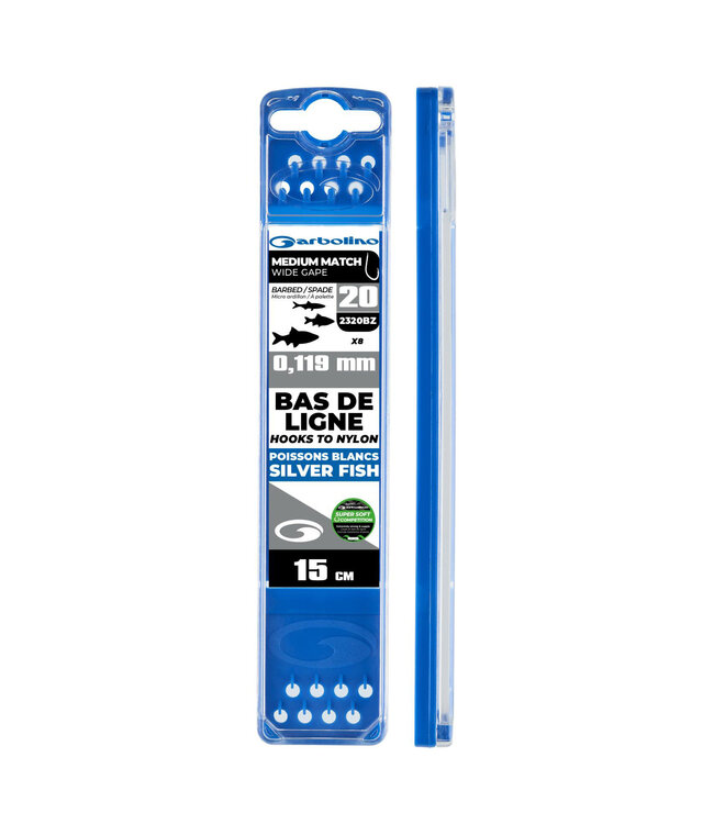 De Garbolino Hooks to Nylon Competition Medium Wide Gape 15cm (8 pcs) zijn professionele onderlijnen ontworpen voor het vissen op grotere witvis zoals brasem, voorn en zeelt, zowel in vijvers als in rivieren.