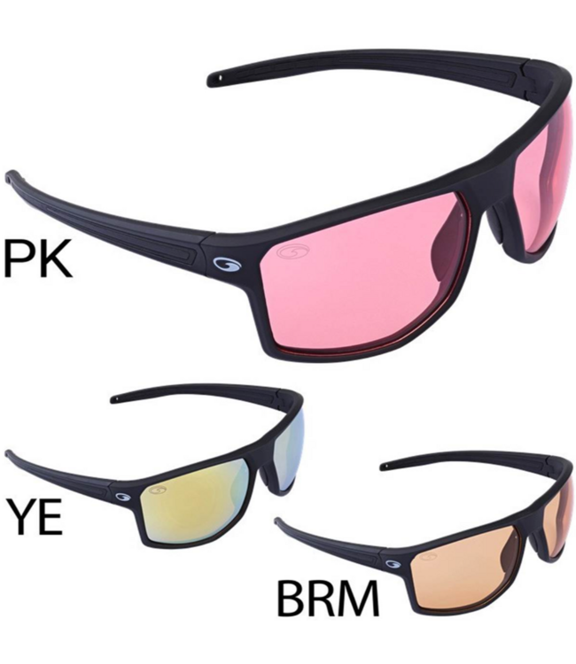 De bril is verkrijgbaar met drie verschillende lenskleuren, elk afgestemd op specifieke visomstandigheden: