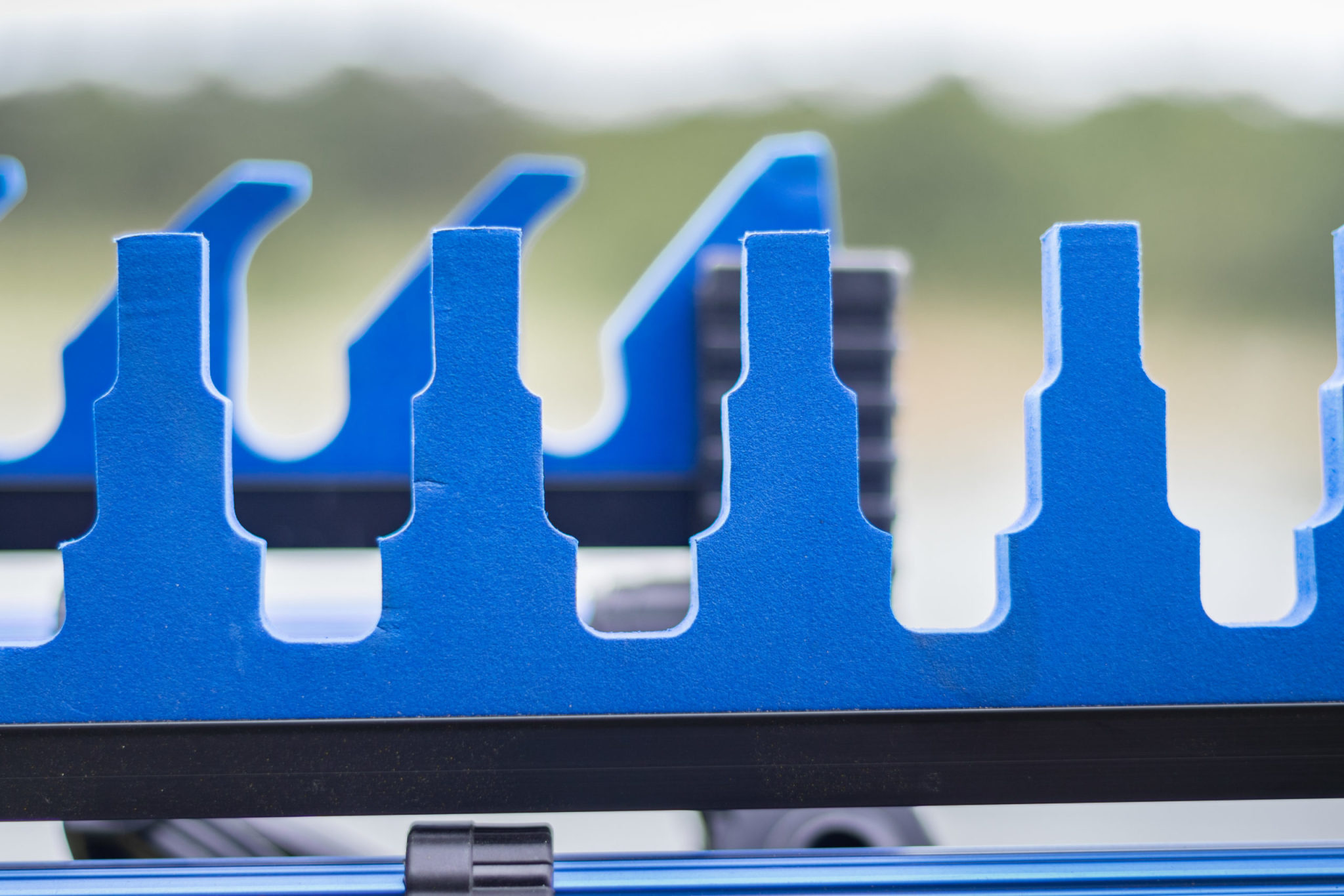 Versie Bas 12B: Deze steun is uitgerust met een slim stoppersysteem om te voorkomen dat uw kits of hengels wegglijden. De ergonomische anti-wind schuimvoering zorgt ervoor dat uw uitrusting stevig en veilig op zijn plaats blijft, zelfs onder de meest uitdagende weersomstandigheden.