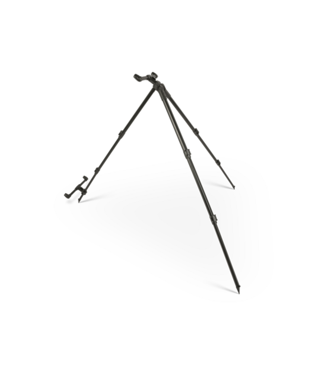 Deze tripod is uitgerust met zowel voor- als achterbuzzbars, gemaakt uit extra stevig materiaal en voorzien van het snelkoppelingssysteem zonder schroefdraad. Je klikt je steunen of beetmelders simpelweg vast met een hendel – snel, betrouwbaar en frustratievrij.