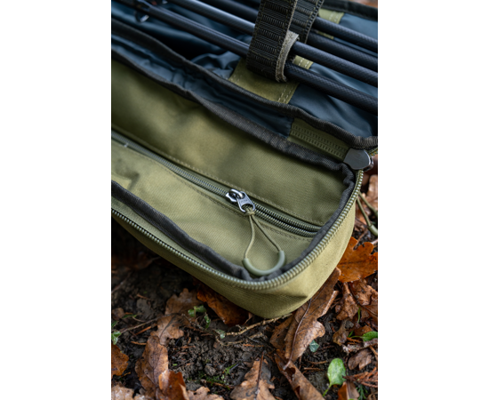 De Korum Progress Folding Holdall 196cm is een innovatieve oplossing voor het veilig en georganiseerd vervoeren van je opgetuigde hengels en overige vismaterialen. Deze opvouwbare holdall biedt ruimte aan 2 of 3 volledig opgetuigde hengels, terwijl de aparte compartimenten extra plek geven aan shelters, brollies, netten en banksticks. Dankzij het slimme scharniermechanisme klapt het hengelvak weg van het sheltercompartiment, waardoor je profiteert van de voordelen van een quiver maar met extra hengelbescherming.