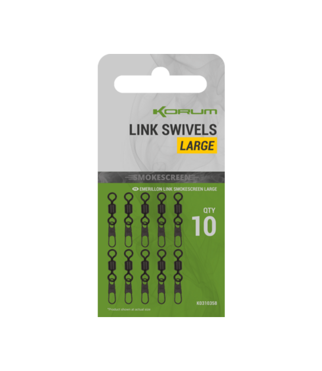 De Korum Smokescreen Link Swivels maken deel uit van de meest geavanceerde camouflage terminal tackle range van Korum. Deze wartels zijn ontworpen met een gestroomlijnde vorm voor optimale prestaties in diverse montages.