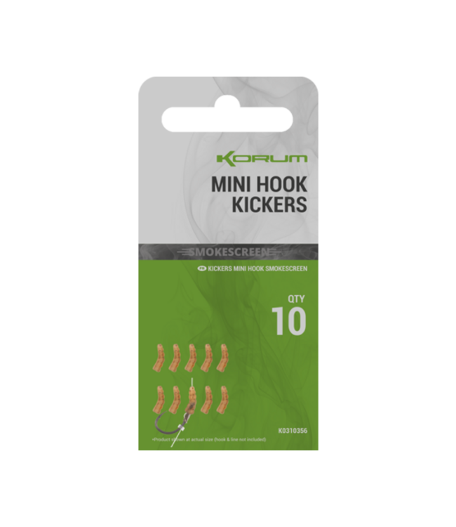 De Korum Smokescreen Mini Hook Kickers maken deel uit van de meest geavanceerde camouflage terminal tackle range van Korum. Ze zijn ontworpen om je rigs netter te maken en een effectieve anti-eject setup te creëren.