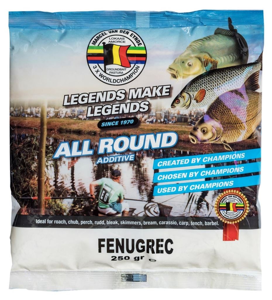 Fenugrec is een kruid dat een sterke geur en smaak afgeeft. Dit kan gebruikt worden voor alle vissoorten. Fenugrec zal een beter effectief geven bij warmere temparaturen. Wij raden een gebruik van 250Gr aan op 4kg lokaas.