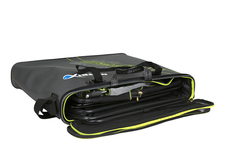 Na het vissen kunnen je netten eenvoudig in de tas blijven hangen om te drogen, terwijl de rubberen coating voorkomt dat water doorlekt en schade veroorzaakt. De tas past bovendien in de meeste EVA net bags, zodat je hem gemakkelijk kunt meenemen.