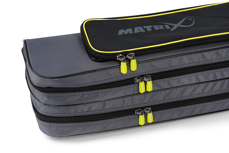 Het foedraal beschikt over twee grote compartimenten met rits, ideaal voor het scheiden van vaste hengels en werphengels. Daarnaast is er een buitenvak voor accessoires zoals brollies en schepnetstelen, zodat je al je uitrusting eenvoudig meeneemt.