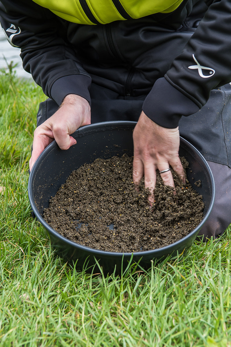 Ideaal voor mengen van grondvoer of soaken van pellets. Solide deksel beschermt het aas.