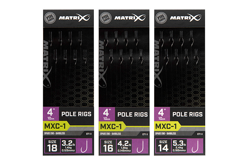 Onderlijnen voor de vaste stok voor op commerciële wateren. Gemaakt van ultrascherpe MXC-1 PTFE gecoate haken en Power Micron mono. Ideaal voor gebruik met pellets, maden, zoete maïs of lunchworst.