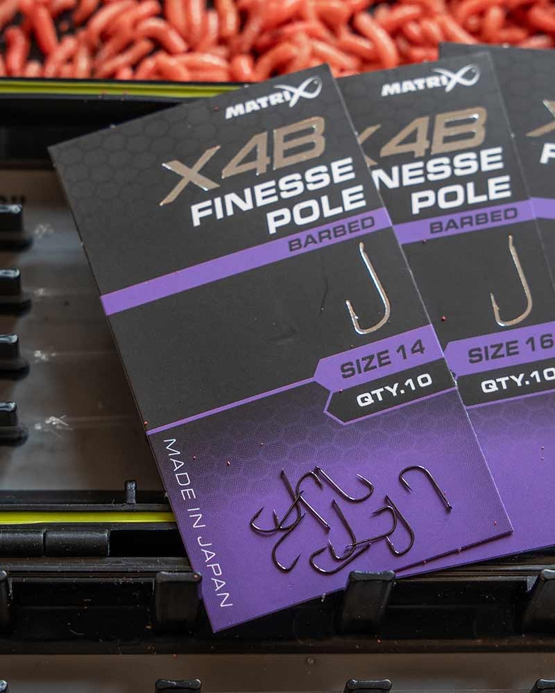De Matrix X4B Finesse Pole Spade-Barbed haken zijn ontwikkeld voor de meest nauwkeurige witvisvisserij, waarbij een perfecte aaspresentatie het verschil maakt. Deze dundradige haak is uitgerust met een weerhaak en een lange haaksteel, wat het onthaken van vis aanzienlijk vergemakkelijkt – ideaal bij gebruik van maden, pinkies of casters.