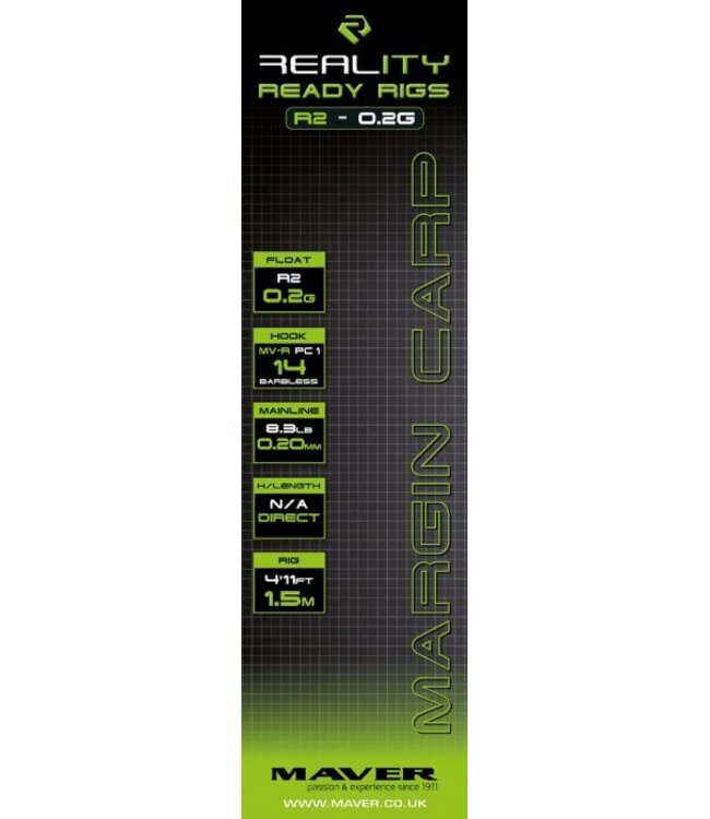 Margin Carp klaargemaakte lijntjes (winder, dobber, lijn, lood & haak) Dobbers zijn beschikbaar in: 0,2g, 0,3g en 0,4g Alle rigs zijn 1.50m lang De hoofdlijn bedraag 0.20mm Haak: maat 14 MV-R haak