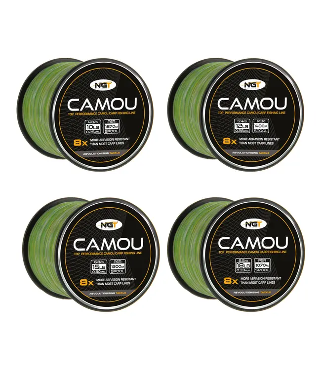 Vis je vaak in wierwater of op stekken met veel obstakels, dan is een gewone nylonlijn vaak snel beschadigd. De NGT Camo Line is hiervoor gemaakt: een camouflaged nylon vislijn met een zeer hoge slijtvastheid. Volgens NGT is deze lijn zelfs 8x meer slijtvast dan de gemiddelde nylon vislijn, wat ze een sterke keuze maakt voor moeilijke omstandigheden.