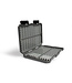 De All-Round Hooklength Box is ideaal voor het bewaren van grote aantallen onderlijnen in lengtes vanaf 7,5 tot 22,5 cm. De capaciteit is aanzienlijk, de doos is voorzien van pennen waarop tot maximaal 20 haken een plaatsje kunnen vinden. Er zijn 20 beschikbare plekken voor onderlijnen tot 22,5 cm lang en 40 posities wanneer de onderlijnen 7,5 of 10 cm lang zijn; dit betekent dat de doos ruimte heeft voor maximaal 800 onderlijnen van 7,5 of 10 cm. De pakking helpt voorkomen dat er water de doos in kan dringen, deze wordt verder afgesloten met twee clips en extra magneten aan de zijkanten. De doos is geconstrueerd van ultra-duurzaam ABS plastic en heeft gefixeerde pennen die perfect gepositioneerd zijn en die je niet in de steek zullen laten. Elk type onderlijn kan duidelijk aangegeven worden met de meegeleverde labels.