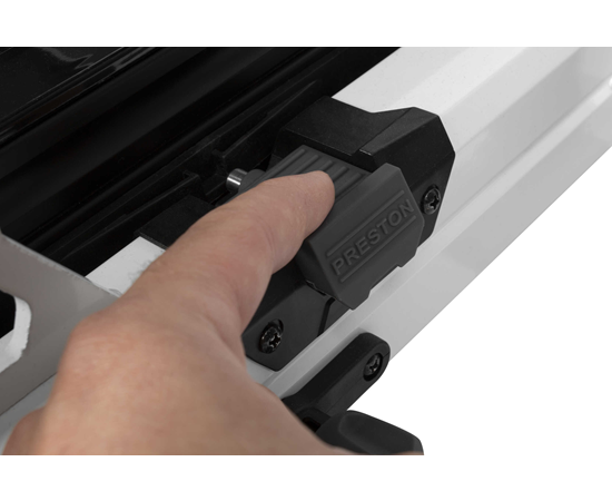 Zoals bij de voorganger is de Absolute Station zitkist uitgevoerd met zes traploos instelbare blokken voor de poten, waarmee je er zeker van kunt zijn dat je zitkist onder alle visomstandigheden secuur gefixeerd en stabiel blijft staan. De opnieuw ontworpen instelwielen op de blokken voor de poten betekenen dat het aanpassen van de hoogte van de poten nu nog eenvoudiger is dan ooit tevoren, de nieuwe, ergonomisch ontworpen handwielen zijn uitgevoerd met een gebruiksvriendelijke, met rubber gecoate grip.