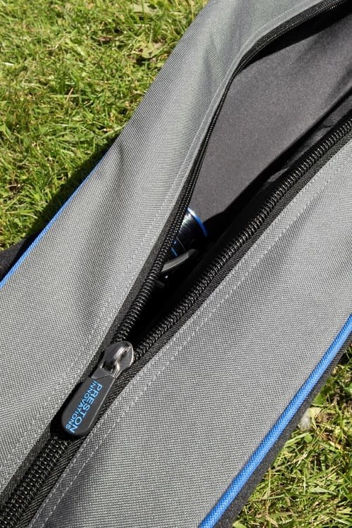Geschikt voor het opslaan van twee opgebouwde, tweedelige hengels tot 3,60 meter lang. Je kunt de Velcro strips binnenin gebruiken om de hengels vast te zetten. Kortere hengels kunnen van elkaar gescheiden worden door gebruik te maken van de interne verdelers, die ontworpen zijn om voor meer ruimte rond de werpmolens te zorgen. De werpmolens worden van elkaar gescheiden tijdens het vervoer.