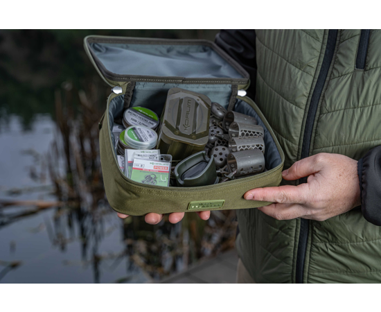 Deze grotere, gevoerde accessoiretas is een essentieel onderdeel van de Progress bagageserie. Met een ruime capaciteit en afmetingen van 26 x 20 x 9,5 cm, past deze tas perfect in de grotere tassen van de serie en biedt uitstekende bescherming voor al uw waardevolle visspullen en accessoires. Het is de ideale oplossing voor het organiseren van uw uitrusting, zodat u alles snel bij de hand heeft.