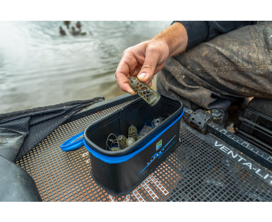 • De Preston Supera X Small EVA Accessory Case is ontworpen om een scala aan visaccessoires zoals feeders, CAD-potten en feeder mallen overzichtelijk en veilig op te bergen. Met een compacte afmeting van 20x9,5x10 cm past deze stevige accessoirecase gemakkelijk in grotere carryalls en zorgt het ervoor dat uw spullen goed georganiseerd blijven. De case is gemaakt van hoogwaardig, waterbestendig EVA-materiaal, wat hem zeer duurzaam maakt en makkelijk schoon te houden. Dit model is ontworpen om de dagelijkse belasting van vissersaccessoires te weerstaan en biedt een lange levensduur. Het transparante deksel zorgt ervoor dat u snel en eenvoudig de inhoud kunt zien zonder de case te openen. De Preston Supera X Small EVA Accessory Case is een uitstekende keuze voor vissers die hun uitrusting georganiseerd, beschermd en gemakkelijk toegankelijk willen houden.