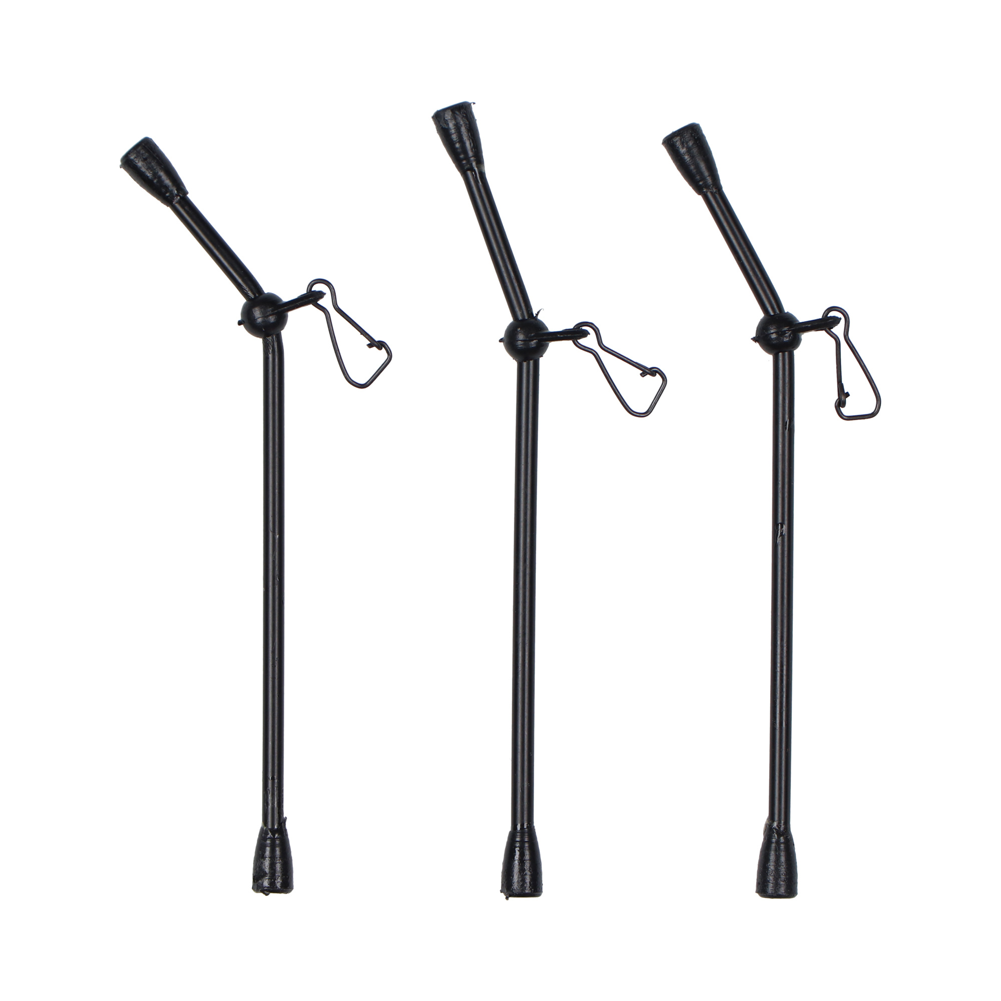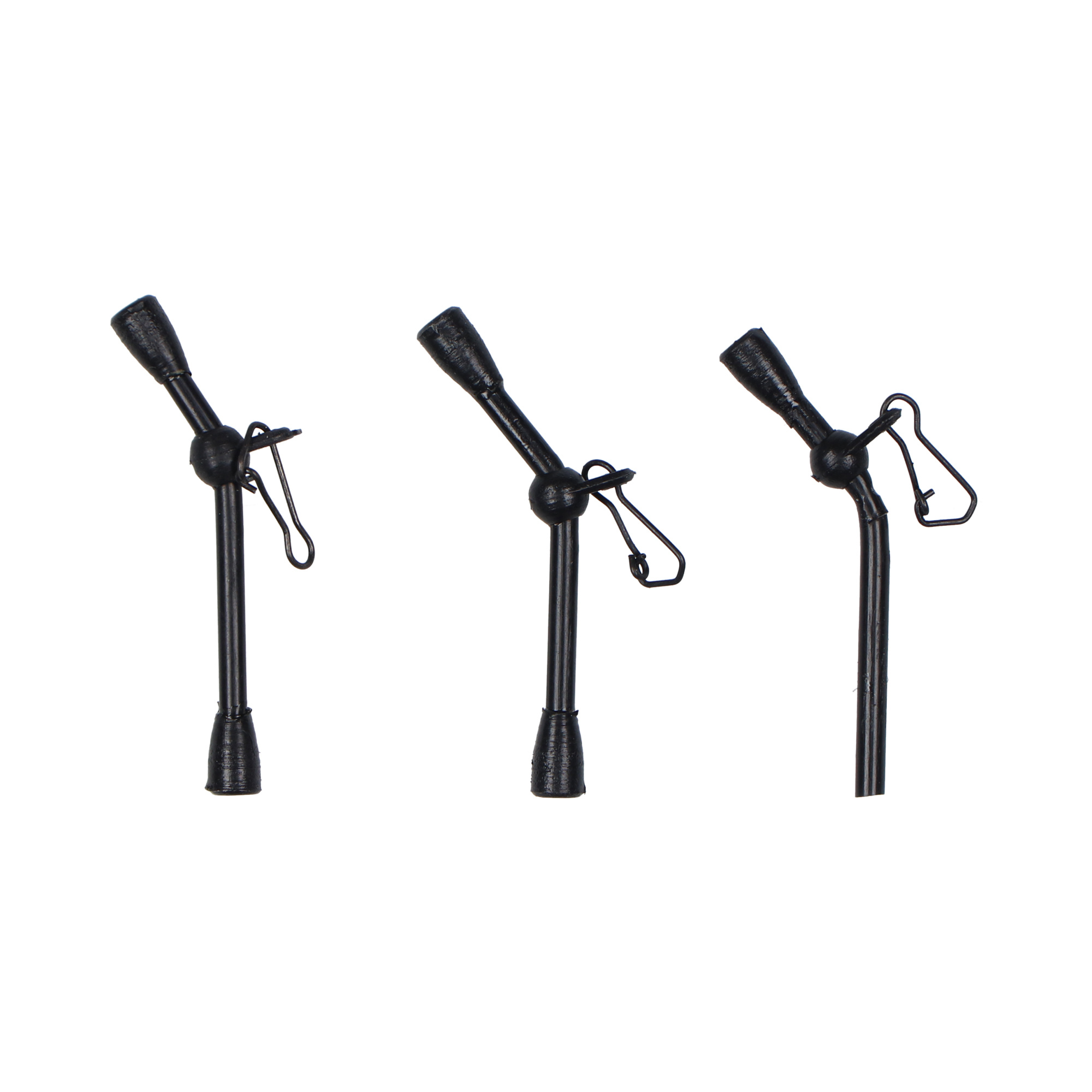 Drie hoekafhouders om te voorkomen dat de onderlijn in de knoop raakt met de hoofdlijn. De hoofdlijn loopt door de buis van de hoekafhouder heen waardoor de lijn vrij in verbinding staat met de hengeltop en aanbeten perfect te registreren zijn.