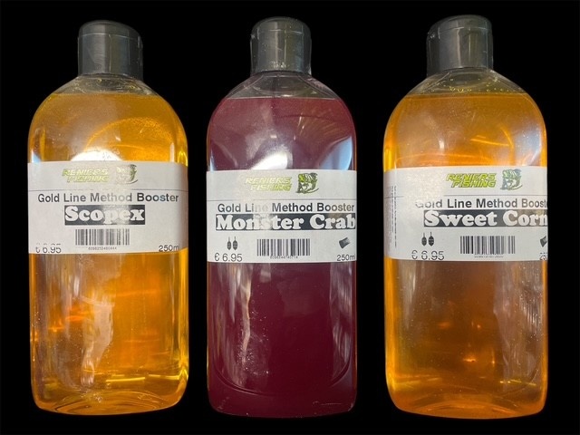 De Reniers Fishing Liquid Method Boosters 250ml zijn speciaal ontwikkeld om je vangsten te verbeteren bij het gebruik van method- en feederkorven. Dankzij de dikke consistentie blijven deze boosters perfect kleven aan pellets en voeder, zelfs onder uitdagende omstandigheden. Daarnaast zijn ze ook uitstekend te gebruiken als dip om je aas extra aantrekkelijk te maken.