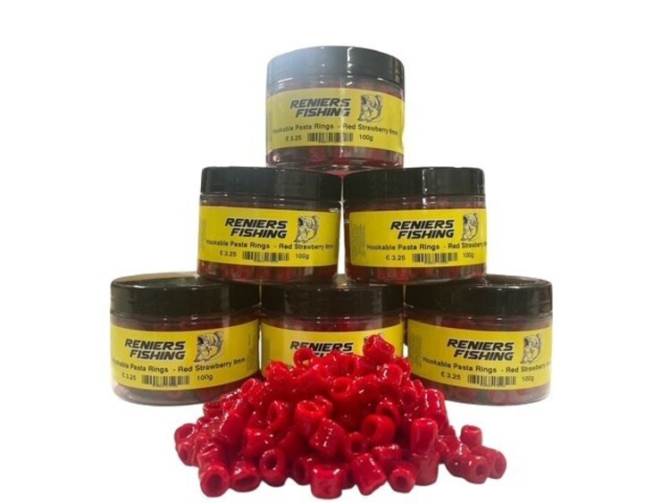 De Sweet Pasta Rings Red 8mm zijn zorgvuldig gekookte pastaringen voor gebruik als haakaas in de commerciële karpervisserij. Door de stevige structuur blijven ze goed aan de haak, zonder af te vallen tijdens het vissen.