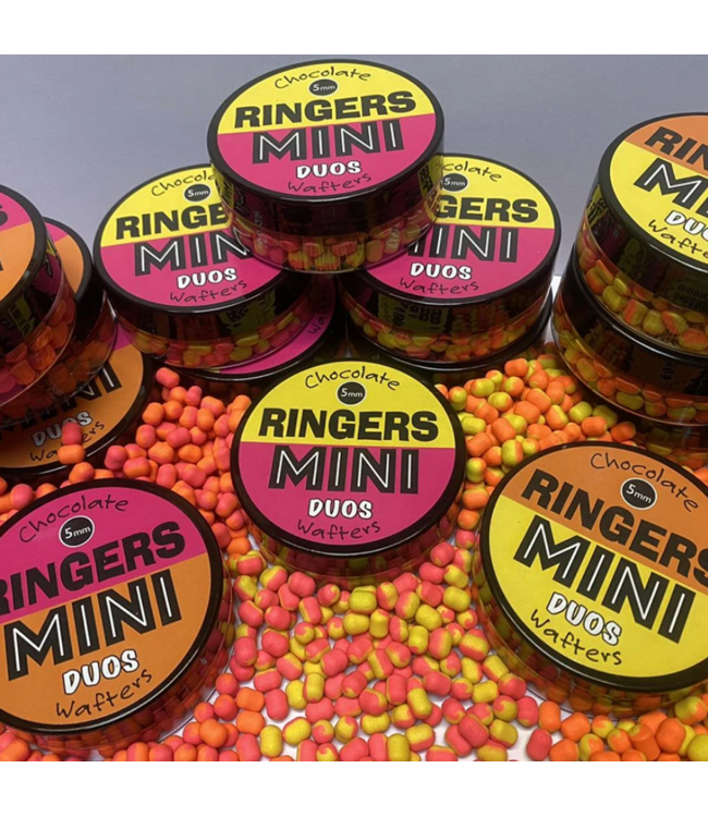 De Ringers Mini Duos Chocolate Wafters 5mm zijn hi-vis haakaasjes met precies voldoende drijfvermogen om je haak perfect te balanceren. Door de combinatie van 2 populaire Ringers kleuren in 1 wafter creëer je een extra opvallende presentatie.